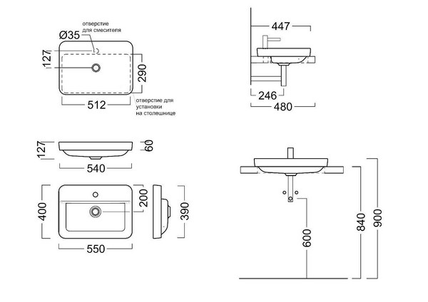 Тип раковины встраиваемая сверху