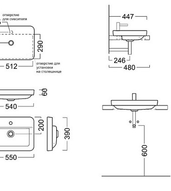 Раковина встраиваемая сверху KERAMA MARAZZI Plaza PLR.wbi.55.1 55х40см - купить в интернет-магазине Орегон с доставкой в регионы Крыма.