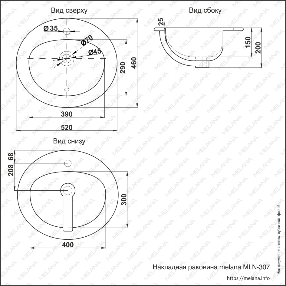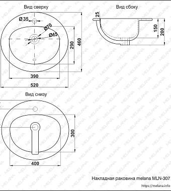 Раковина встраиваемая сверху MELANA 307-805 52х46см - купить в интернет-магазине Орегон с доставкой в регионы Крыма.