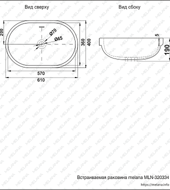 Раковина встраиваемая сверху MELANA 320334-805 61х40см