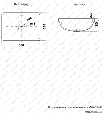 Раковина встраиваемая сверху MELANA 78441-805 58х39см - купить в интернет-магазине Орегон с доставкой в регионы Крыма.