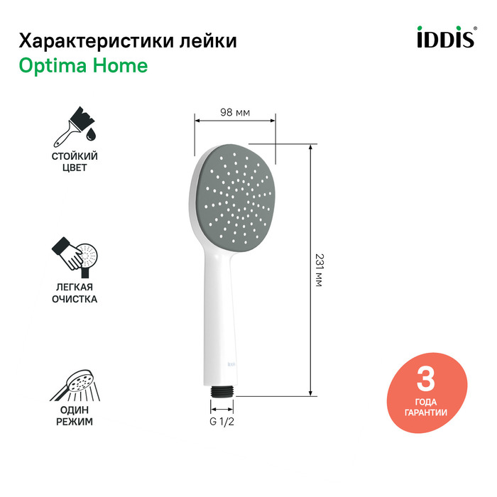 Ручной душ IDDIS Optima Home OPH1FW9i18 белый матовый