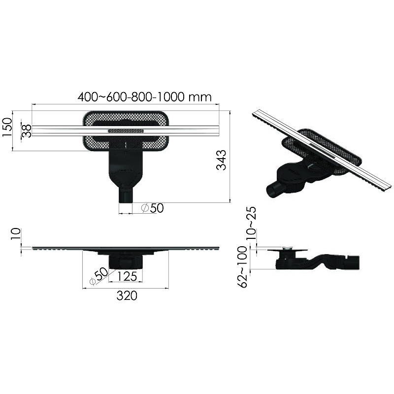 Щелевой душевой трап BERGES SIMPEL 090113 1000 100х31,2см горизонтальный сток - купить в интернет-магазине Орегон с доставкой в регионы Крыма.