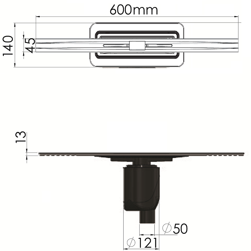 Щелевой душевой трап BERGES SIMPEL 90011 60х12,1см вертикальный сток