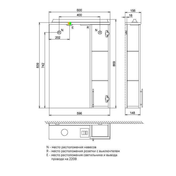 «Шкаф зеркальный IDDIS Sena SEN6000i99 84х60х15,6см с подсветкой» в Ялте и Крыму