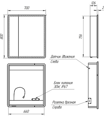 Шкаф зеркальный LEMARK Element LM70ZS-E 15х70х80см с подсветкой - купить в интернет-магазине Орегон с доставкой в регионы Крыма.