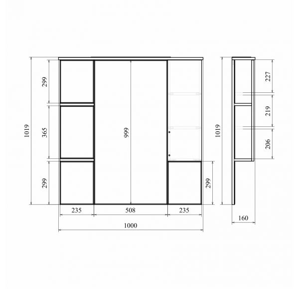 Шкаф зеркальный MIRSANT Камилла УТ000005285 16х98,5х100,3см с подсветкой
