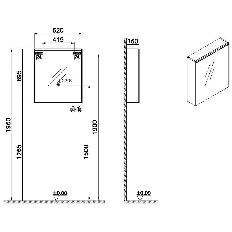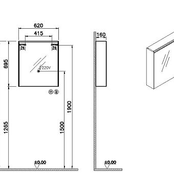 Шкаф зеркальный VITRA Core 66909 16х60х70см с подсветкой