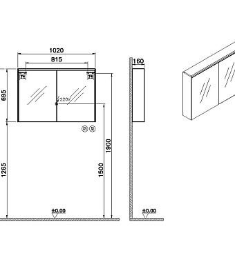Шкаф зеркальный VITRA Core 66912 16х100х70см с подсветкой