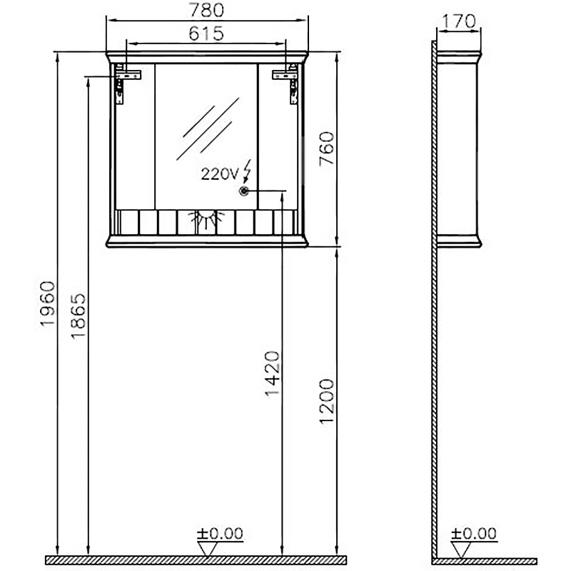 Шкаф зеркальный VITRA Valarte 62232 18х78х76см с подсветкой