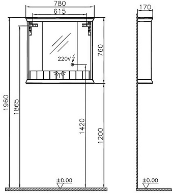 Шкаф зеркальный VITRA Valarte 62232 18х78х76см с подсветкой - купить в интернет-магазине Орегон с доставкой в регионы Крыма.