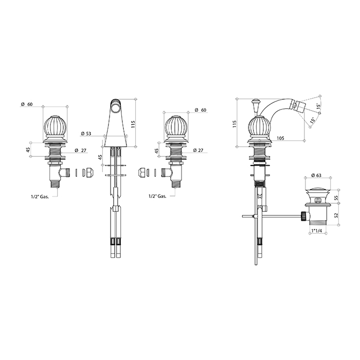 Смеситель для биде Bongio Rivoli 05503OR00 золото - купить в интернет-магазине Орегон с доставкой в регионы Крыма.