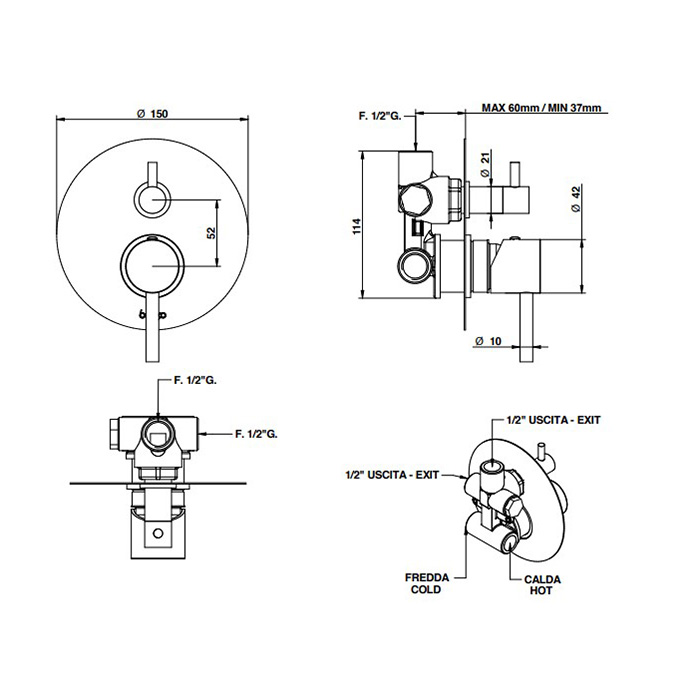 Смеситель для душа Bongio Project 68519NEPREU чёрный матовый - купить в интернет-магазине Орегон с доставкой в регионы Крыма.