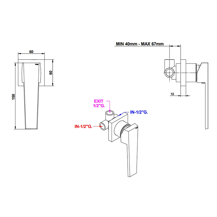 Смеситель для душа Bongio Stelth 01524NSRPEU никель - купить в интернет-магазине Орегон с доставкой в регионы Крыма.