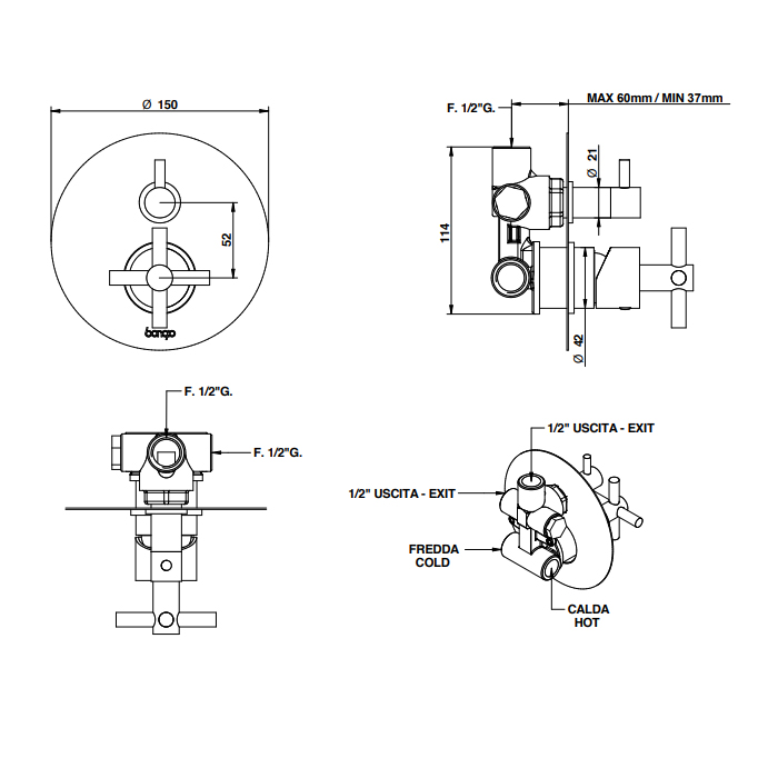 Смеситель для душа Bongio T Cross 30319CR00 хром - купить в интернет-магазине Орегон с доставкой в регионы Крыма.
