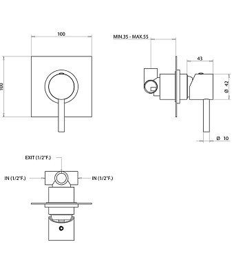 Смеситель для душа Bongio T-Square 52524CRPR хром - купить в интернет-магазине Орегон с доставкой в регионы Крыма.