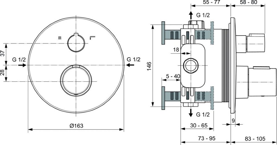 Смеситель для душа IDEAL STANDARD IDEALRAIN A5814XG - это современная эргономичная модель с превосходными эксплуатационными характеристиками. Стильное дизайнерское решение станет ярким акцентом интерьера, а качество исполнения гарантирует надёжность и долговечность. Интуитивное термостат управление обеспечивает исключительный комфорт и удобство использования. Цвет покрытя: чёрный. Страна производителя: Болгария. Вы можете купить Смеситель для душа IDEAL STANDARD IDEALRAIN A5814XG чёрный в интернет-магазине "ОРЕГОН" с бесплатной доставкой по всему Крыму или забрать товар самостоятельно в любом из наших магазинов в Ялте, Севастополе и Симферополе.
