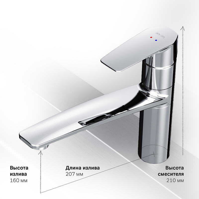 Смеситель для кухни AM-PM Gem F90A00000 поворотный излив хром - купить в интернет-магазине Орегон с доставкой в регионы Крыма.