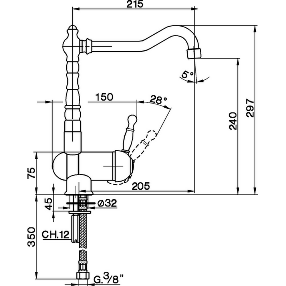 Смеситель для кухни Cisal Arcana Royal AY00153021 высокий излив хром - купить в интернет-магазине Орегон с доставкой в регионы Крыма.
