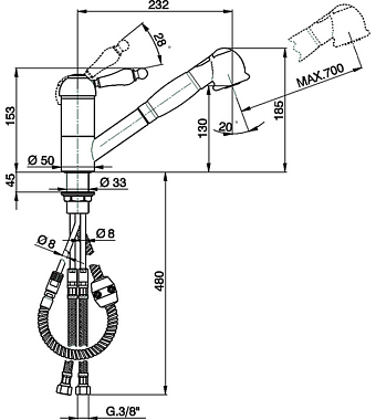 Тип излива выдвижной излив