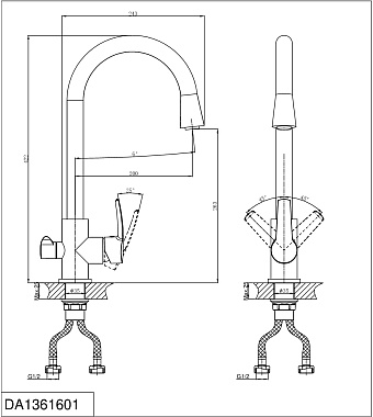 Смеситель для кухни D&K Rhein.Valerius DA1361601 высокий излив хром