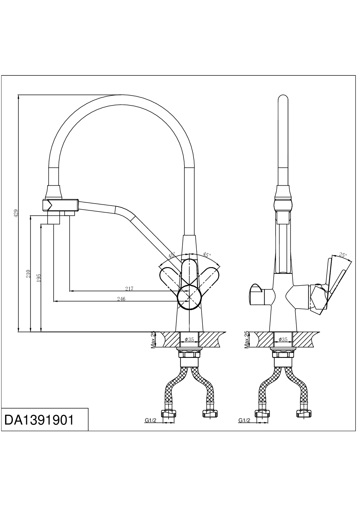 Смеситель для кухни D&K RheinMarx DA1391901 гибкий излив хром