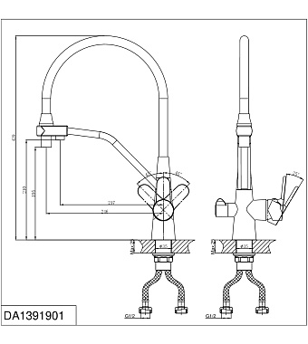 Смеситель для кухни D&K RheinMarx DA1391901 гибкий излив хром - купить в интернет-магазине Орегон с доставкой в регионы Крыма.