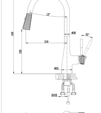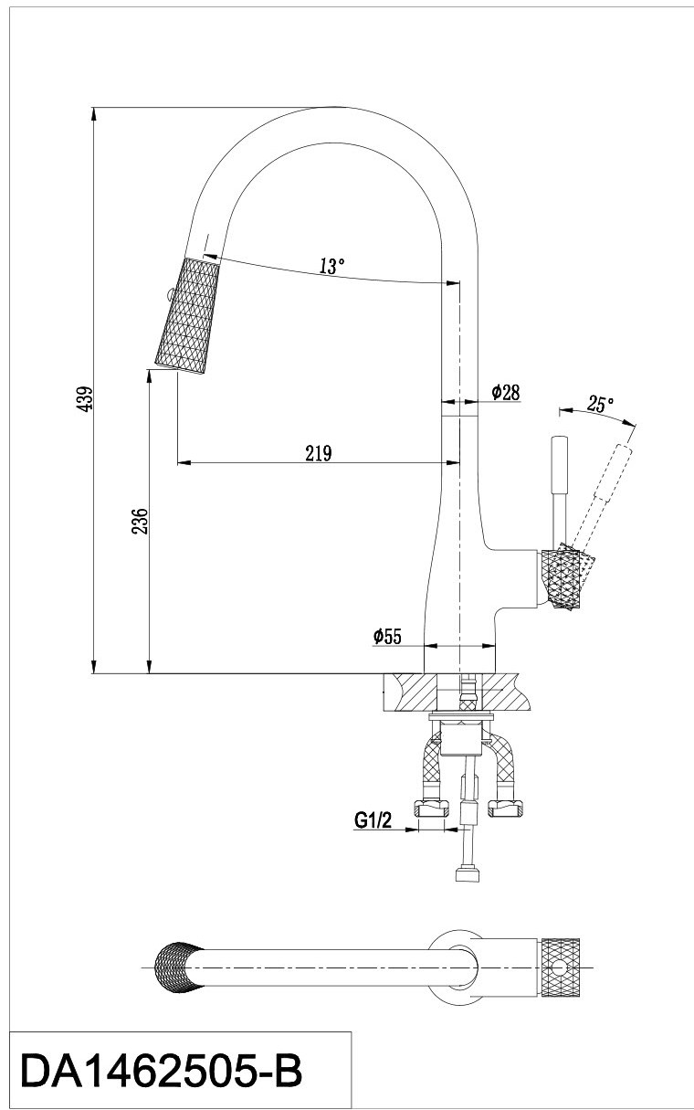 Смеситель для кухни D&K RheinSchiller DA1462505B выдвижной излив чёрный/хром - купить в интернет-магазине Орегон с доставкой в регионы Крыма.