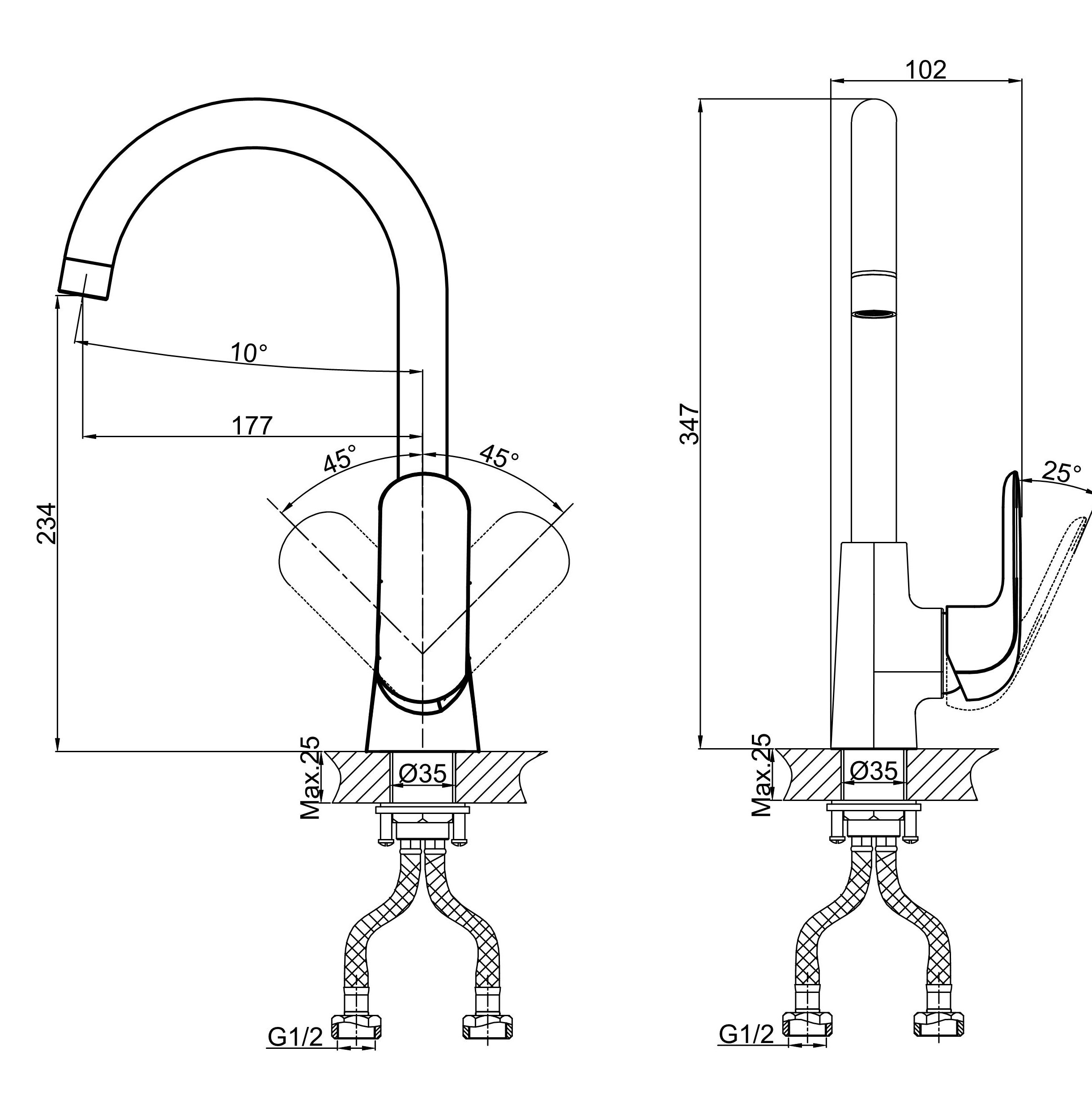 Вращение излива поворотный