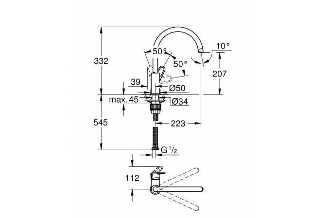 Смеситель для кухни GROHE BauFlow 31230001 высокий излив хром - купить в интернет-магазине Орегон с доставкой в регионы Крыма.