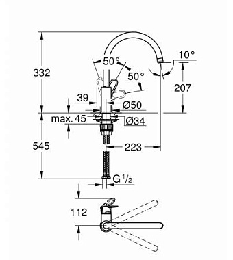 Вращение излива поворотный