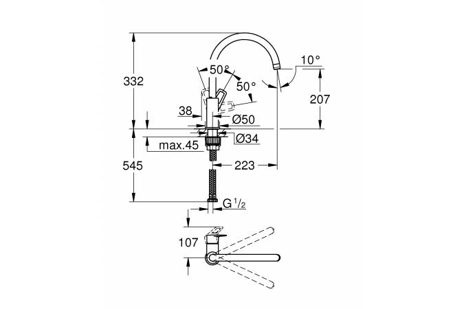 Смеситель для кухни GROHE BauLoop 31232001 высокий излив хром - купить в интернет-магазине Орегон с доставкой в регионы Крыма.