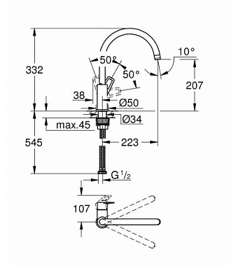 Вращение излива поворотный