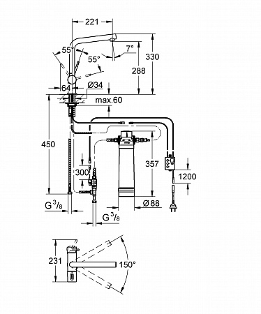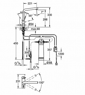 Смеситель для кухни GROHE Blue 31345002 высокий излив хром