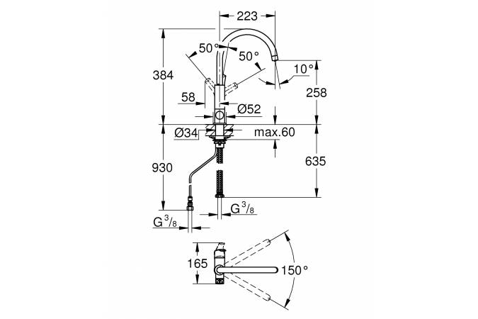 Смеситель для кухни GROHE Blue Pure Eurosmart 119708 высокий излив хром - купить в интернет-магазине Орегон с доставкой в регионы Крыма.
