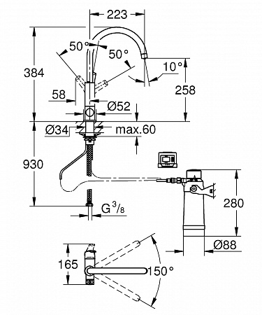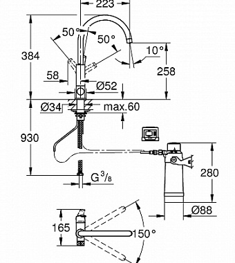 Смеситель для кухни GROHE Blue Pure Eurosmart 30383000 высокий излив хром - купить в интернет-магазине Орегон с доставкой в регионы Крыма.