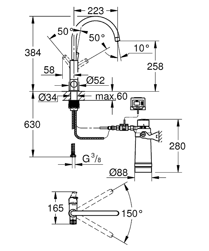 Смеситель для кухни GROHE Blue Pure Eurosmart 30499000 традиционный излив хром - купить в интернет-магазине Орегон с доставкой в регионы Крыма.