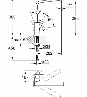 Смеситель для кухни GROHE Eurocube 31255000 высокий излив хром - купить в интернет-магазине Орегон с доставкой в регионы Крыма.