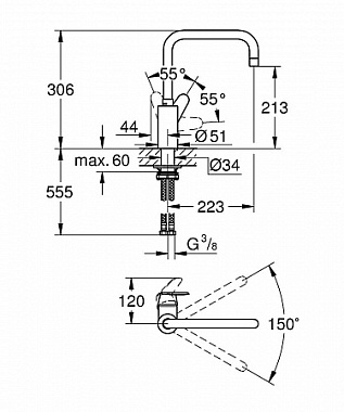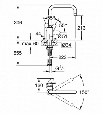 Смеситель для кухни GROHE Eurodisc Cosmopolitan 32259003 высокий излив хром