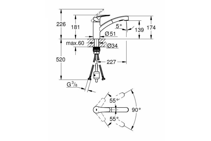 Смеситель для кухни GROHE Eurosmart 30305DC1 выдвижной излив сталь - купить в интернет-магазине Орегон с доставкой в регионы Крыма.