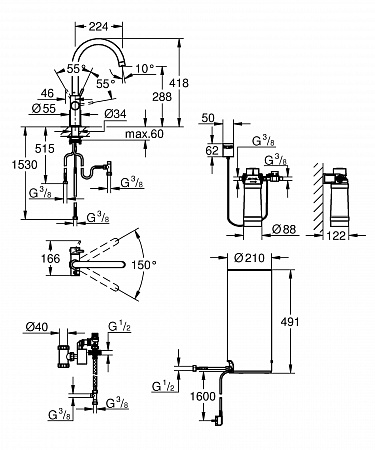 Смеситель для кухни GROHE Red II Duo 30079DC1 высокий излив нержавеющая сталь - купить в интернет-магазине Орегон с доставкой в регионы Крыма.