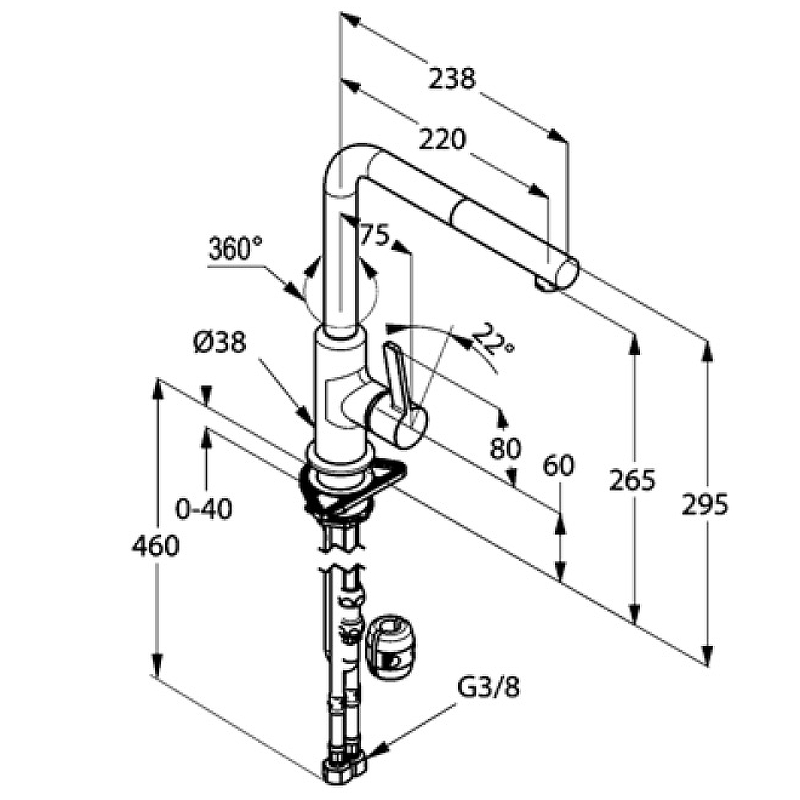 Длина излива, см 22