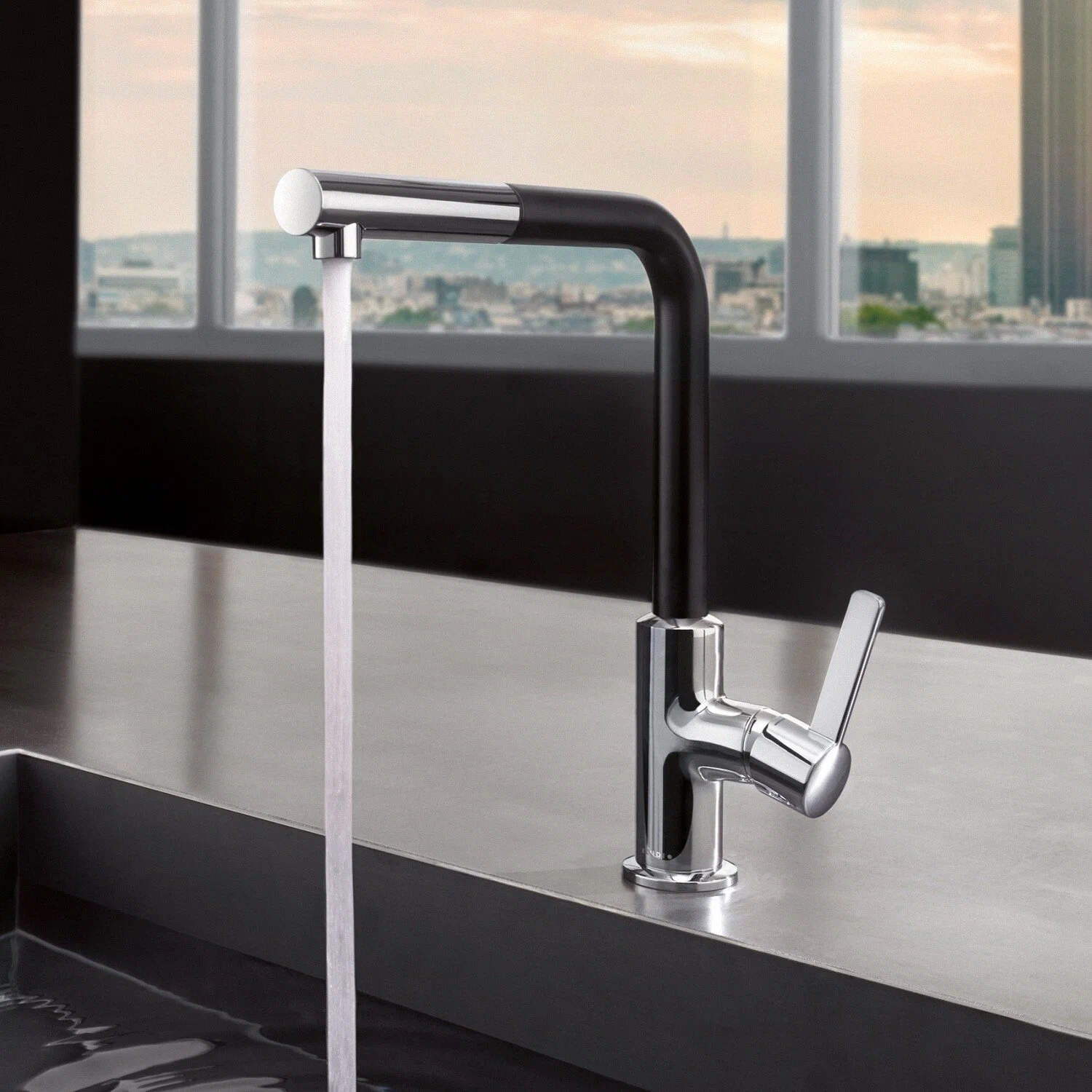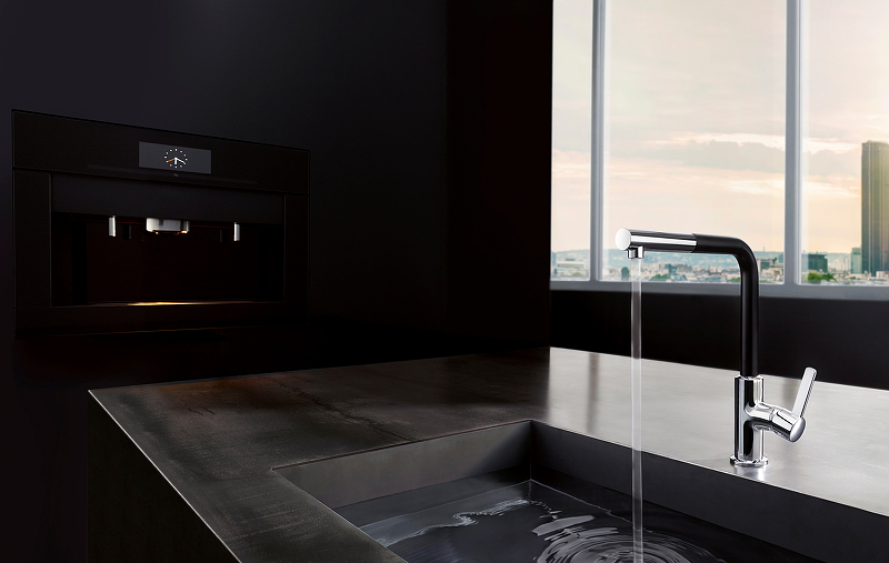 Смеситель для кухни KLUDI L-ine 408518775 традиционный излив чёрный/хром