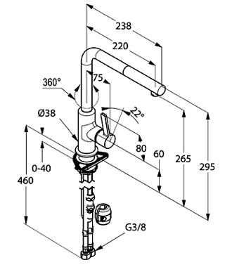 Смеситель для кухни KLUDI L-ine 408518775 традиционный излив чёрный/хром - купить в интернет-магазине Орегон с доставкой в регионы Крыма.
