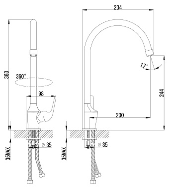 Вращение излива поворотный