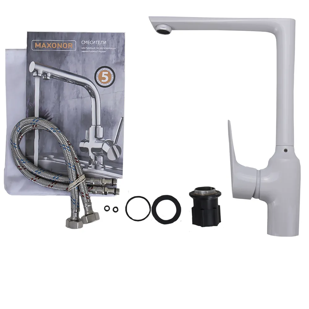 Смеситель для кухни Maxonor MN4073-8 поворотный излив белый - купить в интернет-магазине Орегон с доставкой в регионы Крыма.