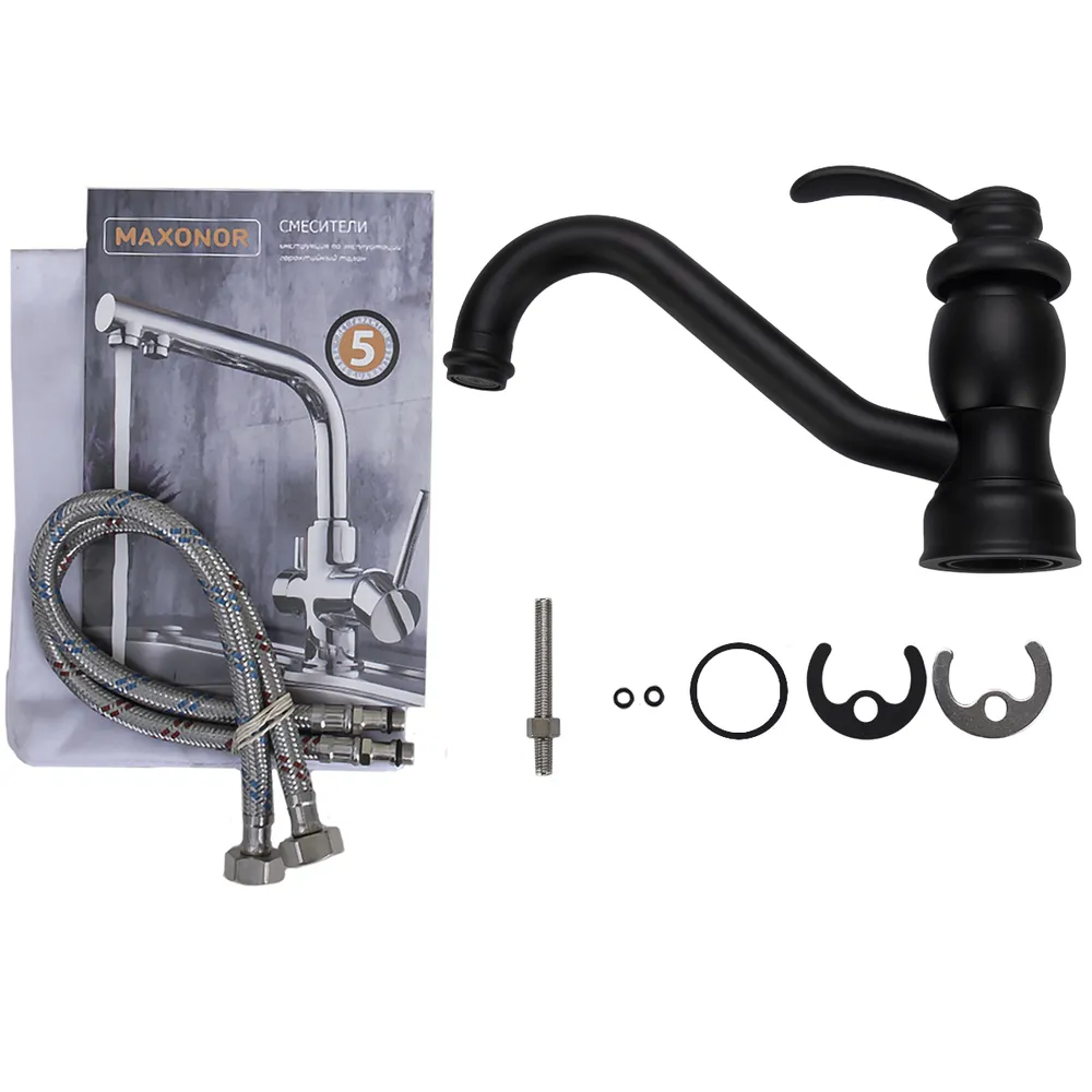Смеситель для кухни Maxonor MN4176-7 поворотный излив чёрный - купить в интернет-магазине Орегон с доставкой в регионы Крыма.