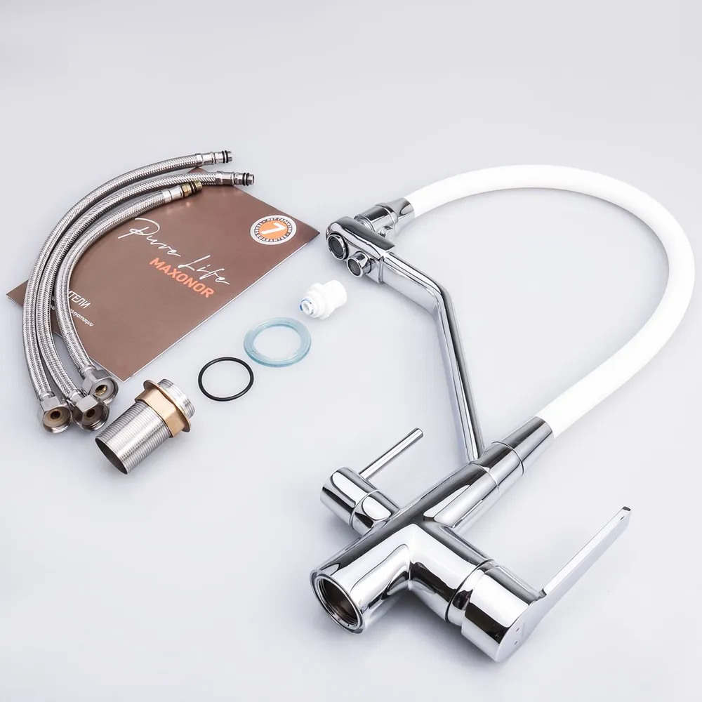 Смеситель для кухни Maxonor MN4460 гибкий излив белый