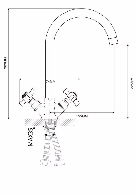 Смеситель для кухни Maxonor MN4624 поворотный излив хром