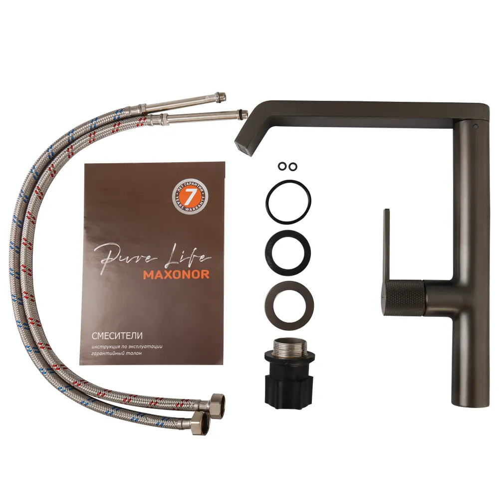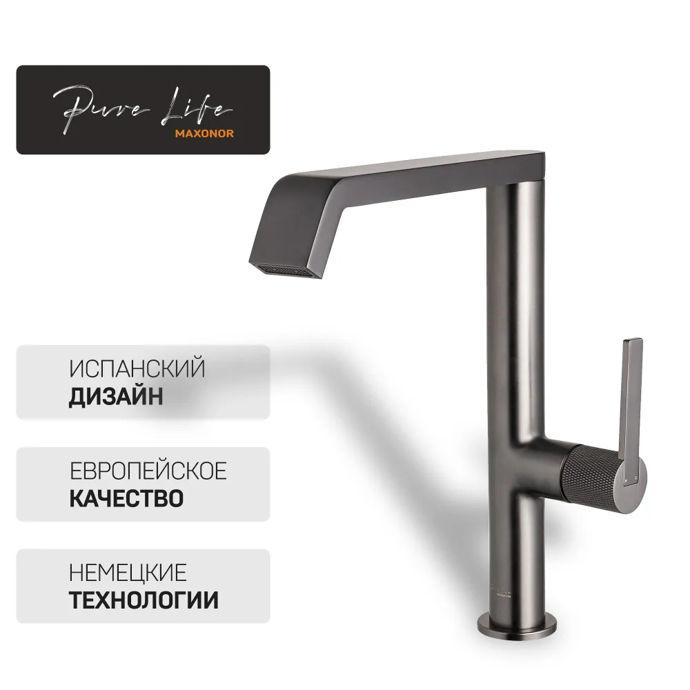 Смеситель для кухни Maxonor PL4084-9 фиксированный излив серый - купить в интернет-магазине Орегон с доставкой в регионы Крыма.